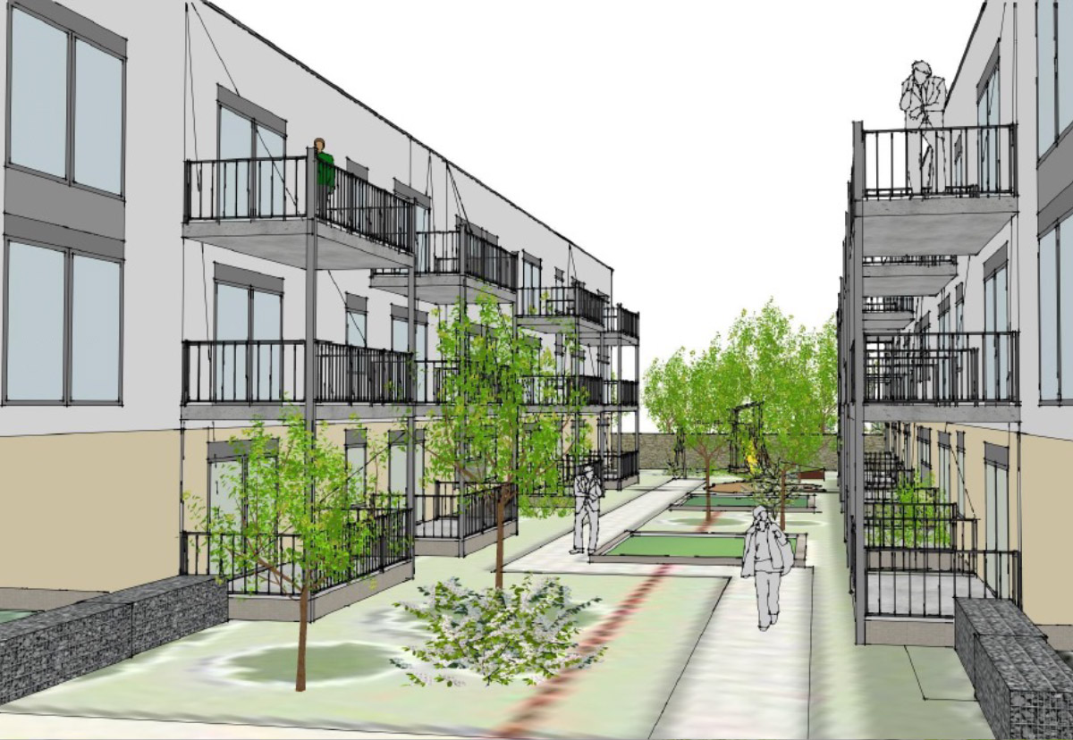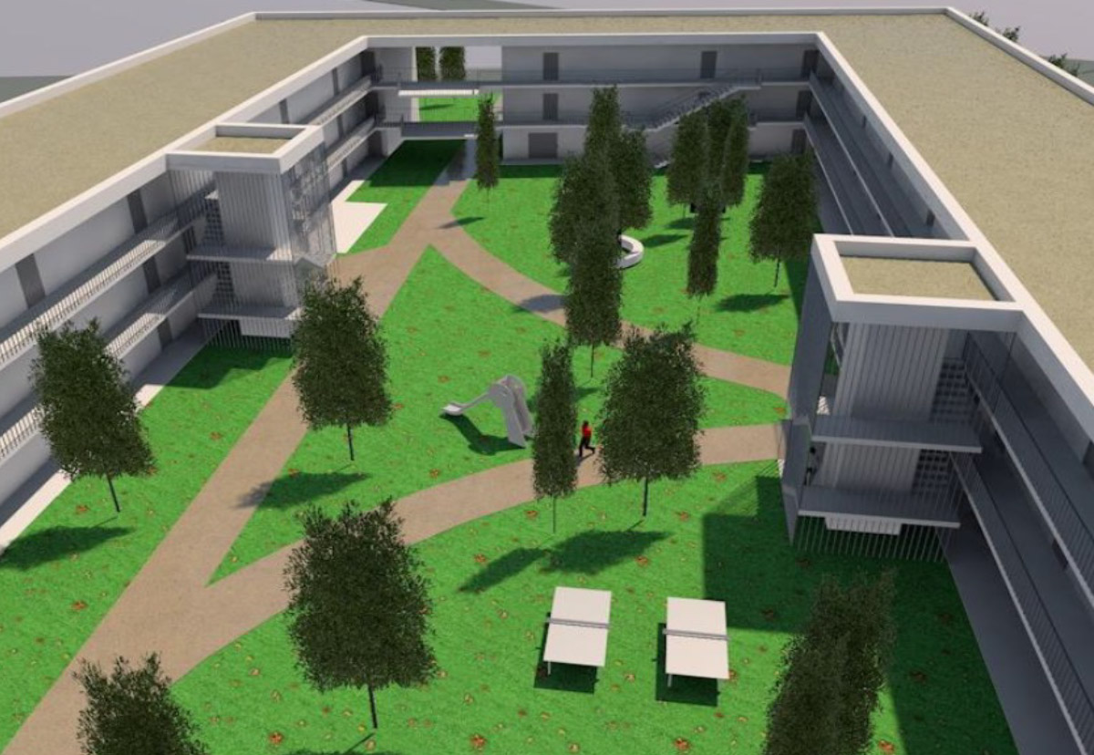 Nachdem die veraltete Bausubstanz zurückgebaut wurde, soll kurz darauf auf dem Gelände mit dem Bau eines zukunftsfähigen sozialen Wohnquartiers mit Blockrandbebauung und innerem Kommunikations-Laubenhof begonnen werden. Ein Quartier für Menschen, die im gemeinschaftlichen Miteinander der Generationen, voneinander profitieren. Die Wohnungen, der Außenbereich und das Wohnumfeld sollen barrierearm entstehen. Als Treffpunkt für alle Bewohner wird eine 4-Zimmer-Erdgeschosswohnung inkl. angeschlossener Terrasse dienen. Diese wird von der Bewohnerschaft selbst betrieben und ist voll möbliert sowie mit behindertengerechter Küche und Flat-TV ausgestattet. Die Nutzung ist für die Mieter kostenfrei.